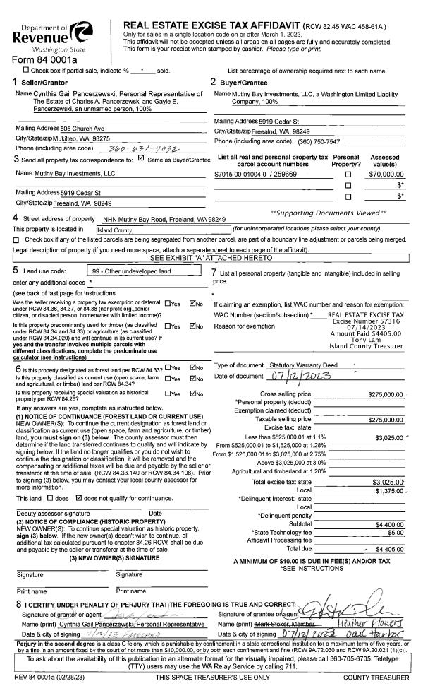 | Mailing Address: | 57 N SUNSET DR CAMANO ISLAND, WA 98282 | % Ownership: | 100.0000000000% |