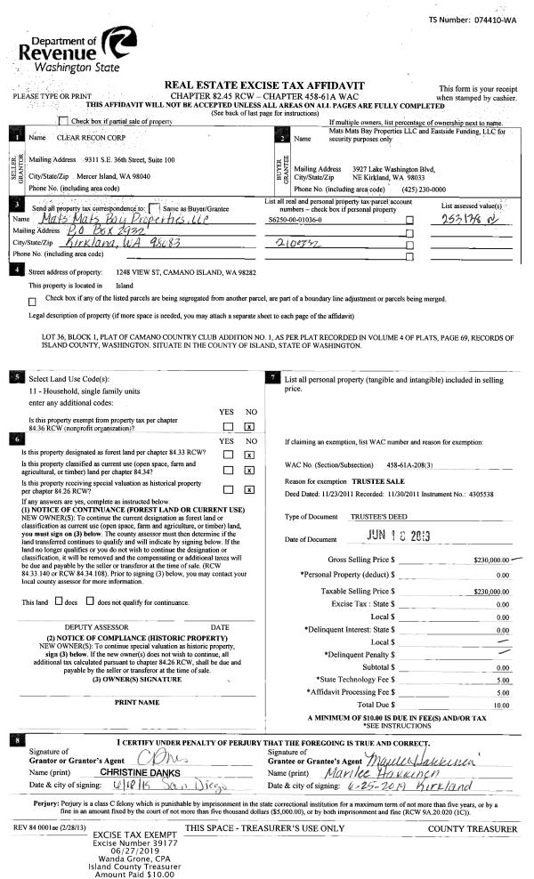 | Mailing Address: | JANICE RAE STILTS 1556 BONNIE LANE CAMANO ISLAND, WA 98282 | % Ownership: | 100.0000000000% |