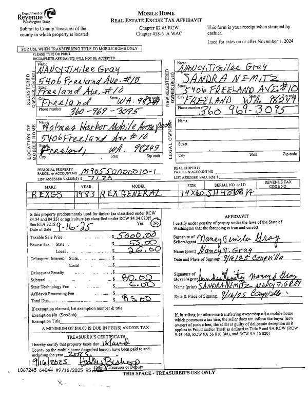 | Mailing Address: | 1164 RACE RD COUPEVILLE, WA 98239-9528 | % Ownership: | 100.0000000000% |