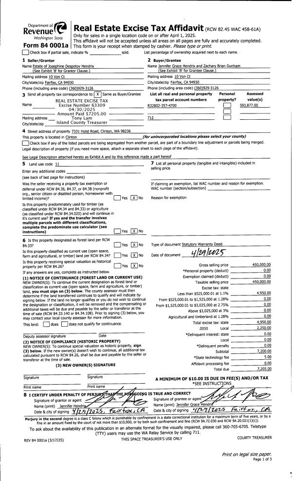| Mailing Address: | 4 NE SEVENTH ST COUPEVILLE, WA 98239 | % Ownership: | 100.0000000000% |