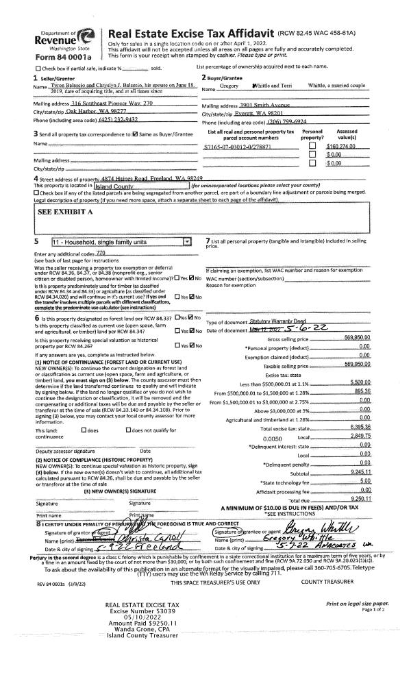 | 4 | 05/01/1996 | WD | Warranty Deed | BELL, DUANE A | TR, CAMANO I | | | $74,500.00 | 61532 | 96007599 |
