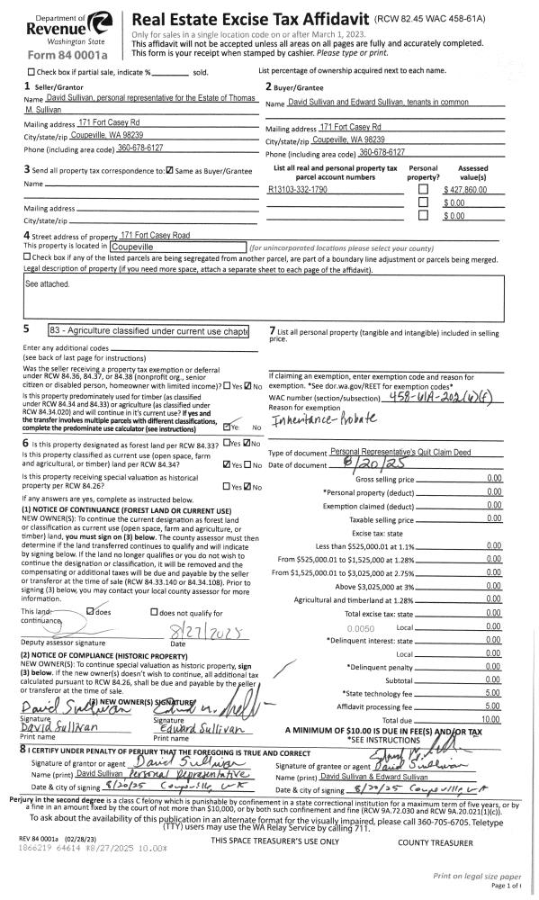 | Mailing Address: | PO BOX 156 COUPEVILLE, WA 98239 | % Ownership: | 100.0000000000% |