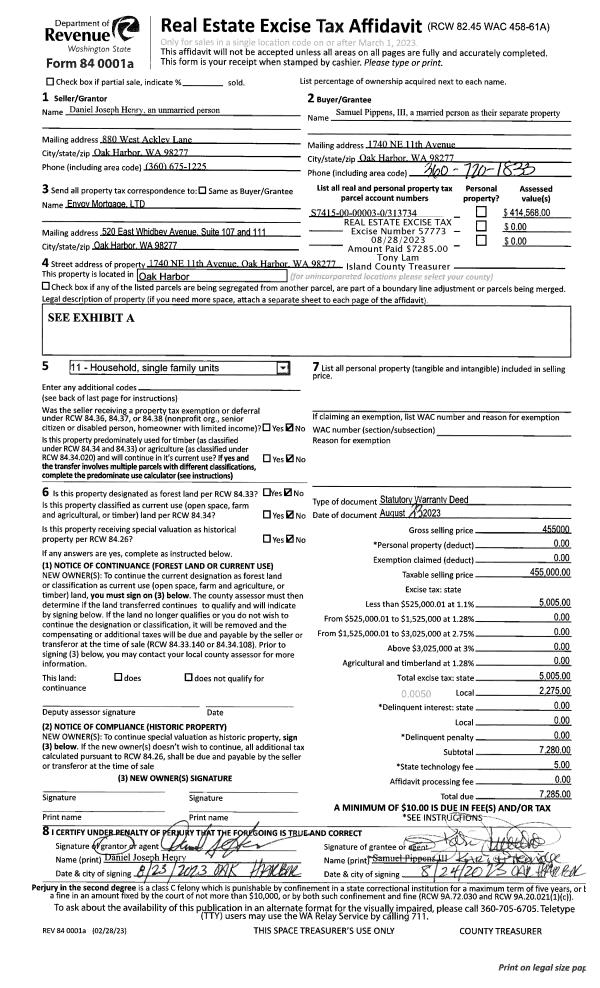 | Mailing Address: | 791 ARROWHEAD RD CAMANO ISLAND, WA 98282 | % Ownership: | 100.0000000000% |