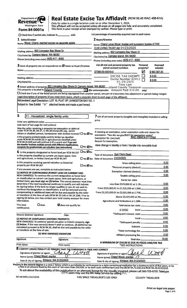 | Mailing Address: | ALESHIA L MITTEN PO BOX 278 COUPEVILLE, WA 98239 | % Ownership: | 100.0000000000% |