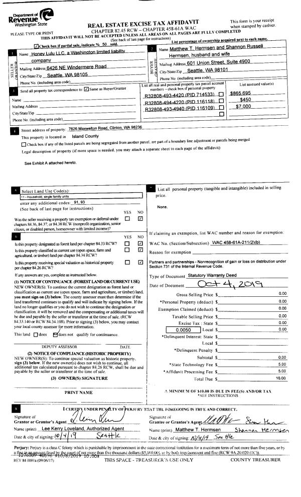 | Mailing Address: | TRACI BERGSMA 2377 GOSS RIDGE RD FREELAND, WA 98249-9545 | % Ownership: | 100.0000000000% |