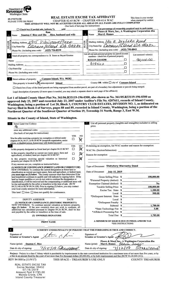 | Tax Area: | 712 - APPRAISER-S Whid Schl Dist, outside Langley, improved, greater than 1 acre | Land Use Code | 11 |