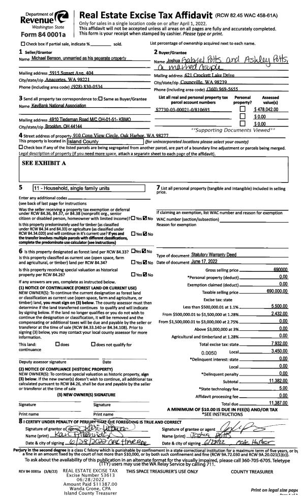 | Mailing Address: | 979 STARFLOWER RD OAK HARBOR, WA 98277 | % Ownership: | 100.0000000000% |