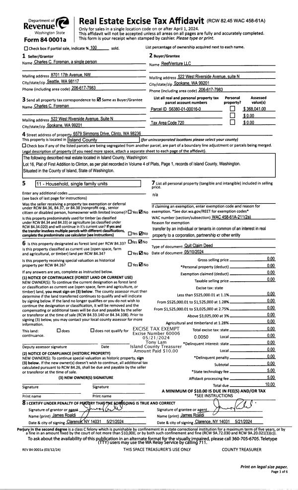 | Mailing Address: | 91 SE 11TH AVE #303 OAK HARBOR, WA 98277 | % Ownership: | 100.0000000000% |