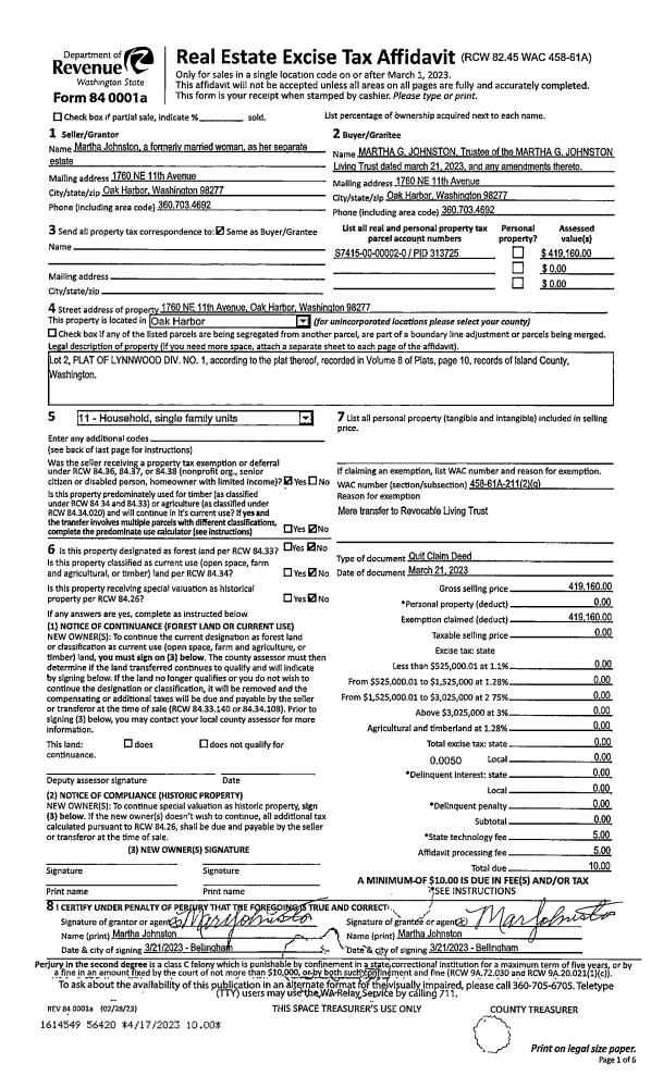 | Mailing Address: | 91 SE 11TH AVE APT #302 OAK HARBOR, WA 98277 | % Ownership: | 100.0000000000% |