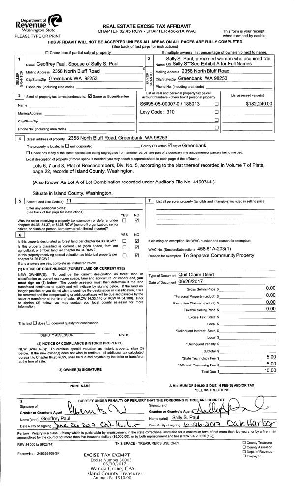 | Mailing Address: | JENNIFER POLUS 2930 SONIC LN OAK HARBOR, WA 98277 | % Ownership: | 100.0000000000% |