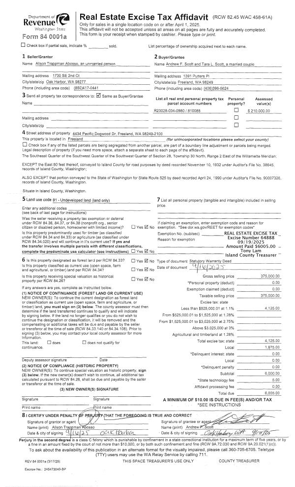 | Mailing Address: | DEBORAH W JACKSON PO BOX 433 COUPEVILLE, WA 98239 | % Ownership: | 100.0000000000% |