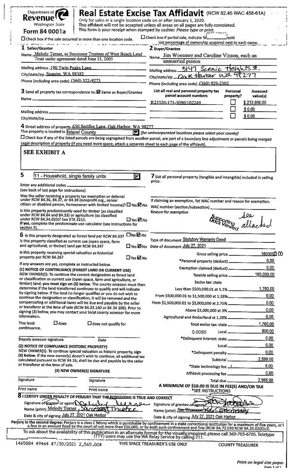 | Tax Area: | 719 - APPRAISER-S Whid Schl Dist, outside Langley, vacant & 50 acres or less | Land Use Code | 91 |