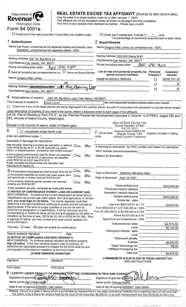 | Tax Area: | 710 - APPRAISER-S Whid Schl Dist, outside Langley, improved & 1 acre or less | Land Use Code | 91 |