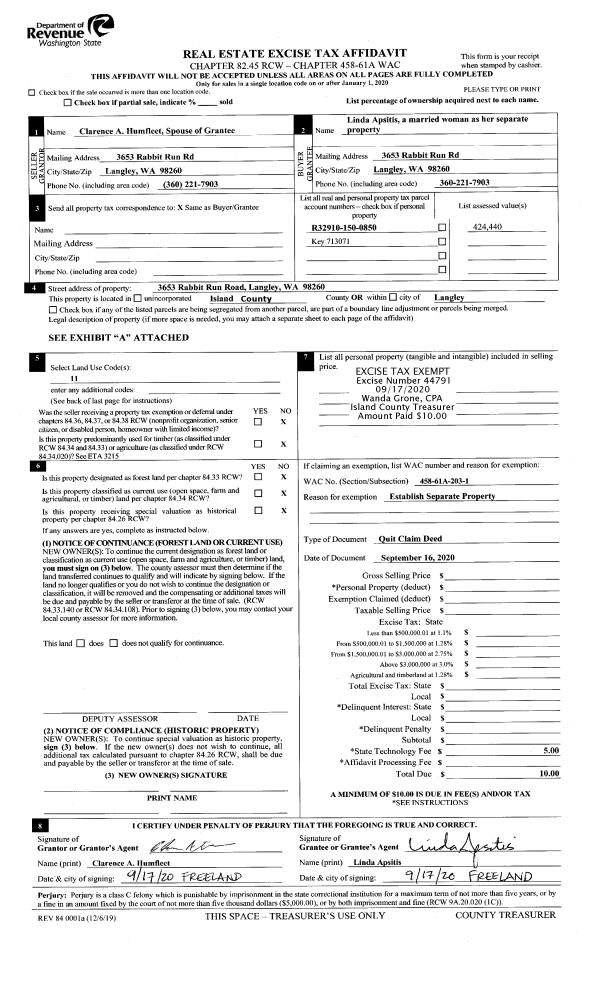 | Mailing Address: | DEBRA L PRICE 1836 ARNOLD RD COUPEVILLE, WA 98239 | % Ownership: | 100.0000000000% |