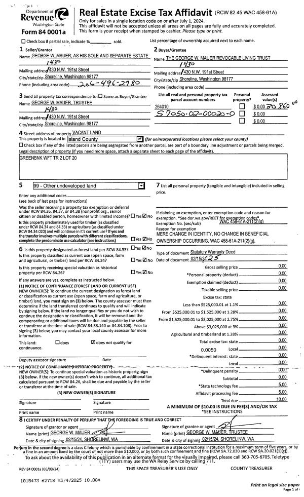 | Mailing Address: | KARA VALLEJO 2351 HAPPY LANE OAK HARBOR, WA 98277 | % Ownership: | 100.0000000000% |
