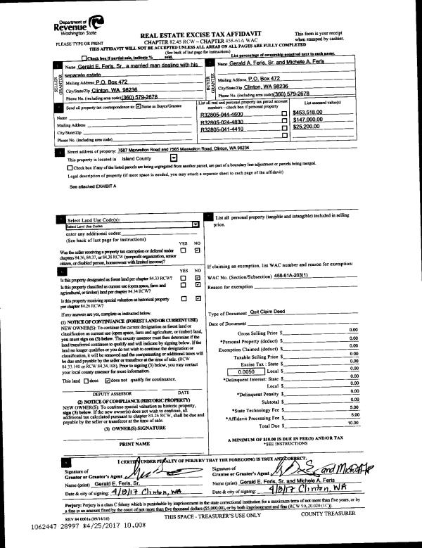 | Mailing Address: | 4523 WILLOW LN OAK HARBOR, WA 98277 | % Ownership: | 100.0000000000% |