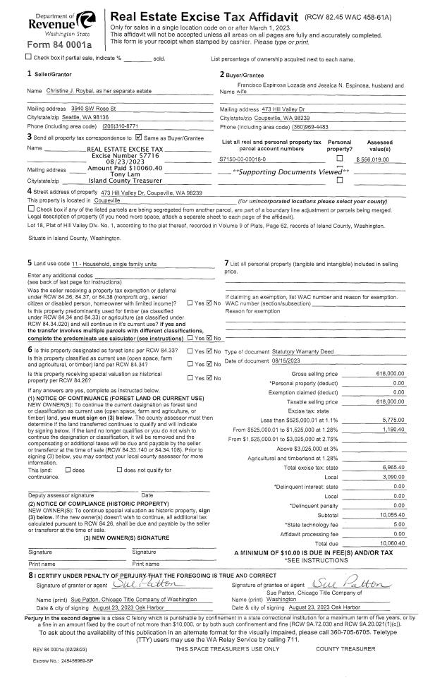 | 1 | 09/18/2024 | EZ | Easement | WHIDBEY CAMANO LAND TRUST | WHIDBEY CAMANO LAND TRUST | | | $1,250,000.00 | 61344 | 4577369 |
