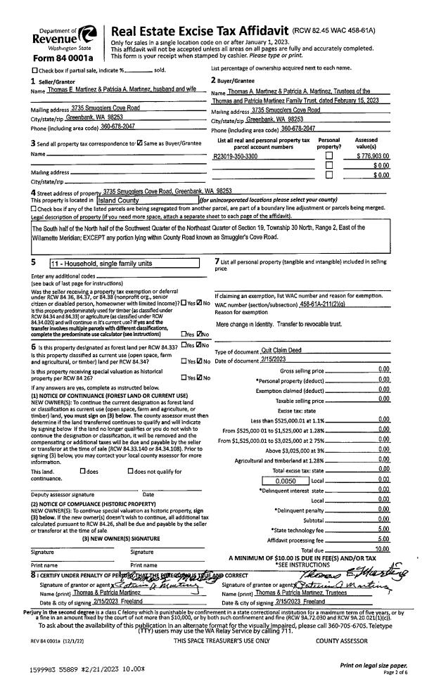 | 2 | 09/18/2024 | GRANTD | Grant Deed | WHIDBEY CAMANO LAND TRUST | UNITED STATES OF AMERICA | | | $430,000.00 | 61343 | 4577368 |