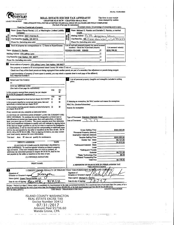 | Mailing Address: | 2095 EASTPOINT DRIVE LANGLEY, WA 98260-8020 | % Ownership: | 100.0000000000% |