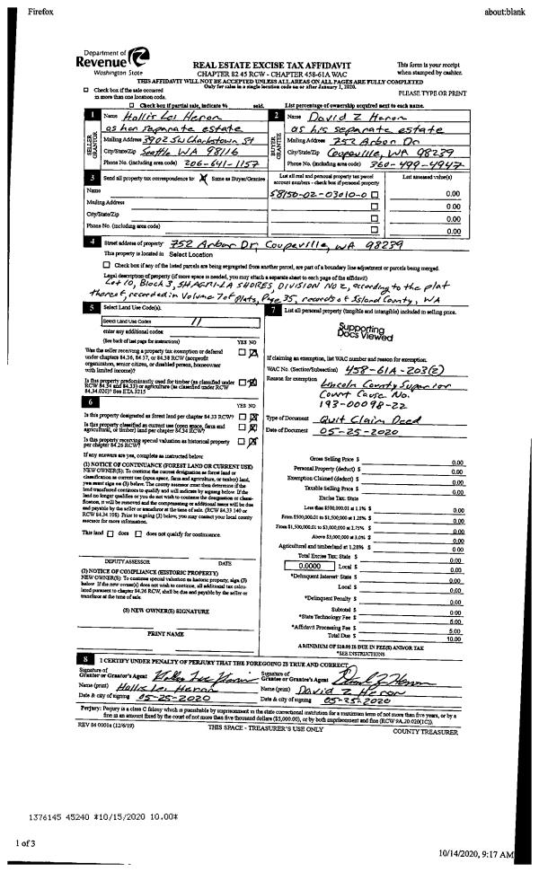 | Mailing Address: | 1080 NEW MORNING RD CAMANO ISLAND, WA 98282 | % Ownership: | 100.0000000000% |