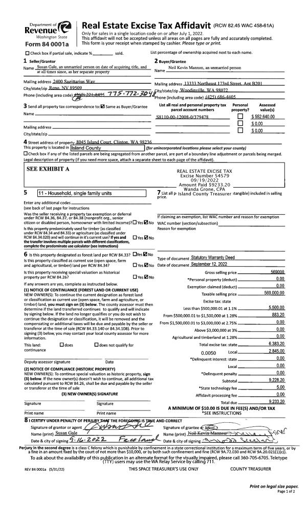 | 1 | 05/25/2021 | WD | Warranty Deed | TIEN YUN INVESTMENTS LLC | CAMANO PROPERTIES IV, LLC | | | $577,500.00 | 48557 | 4520981 |
