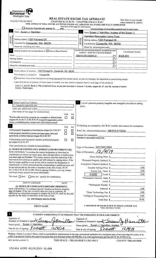 | 1 | 01/16/2024 | QCD | Quit Claim Deed | KILBORN UNDIV 1/3 INT, STEPHEN W | WHIDBEY VACATION RENTAL, LLC | | | $0.00 | 63322 | 4585202 |