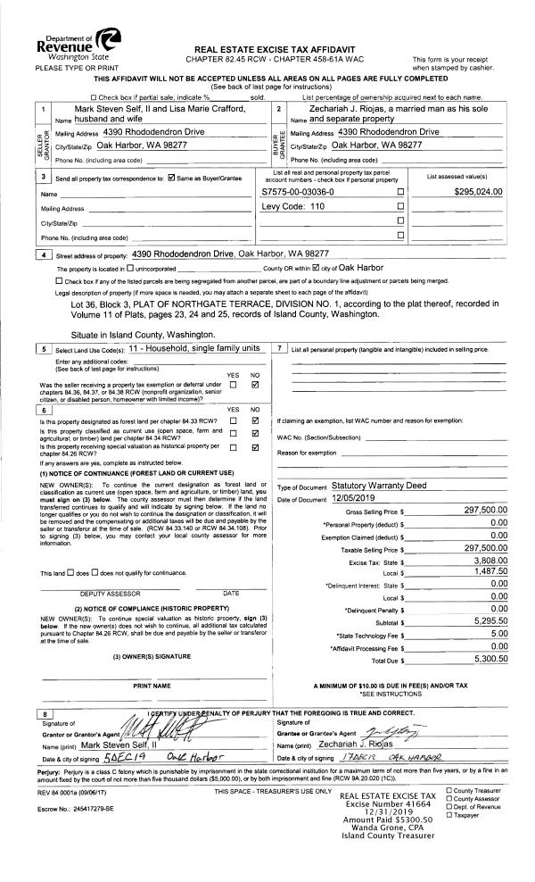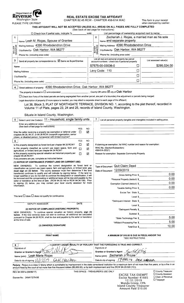 | Mailing Address: | JOHN RICHARDSON 955 EBONY PL CAMANO ISLAND, WA 98282 | % Ownership: | 100.0000000000% |