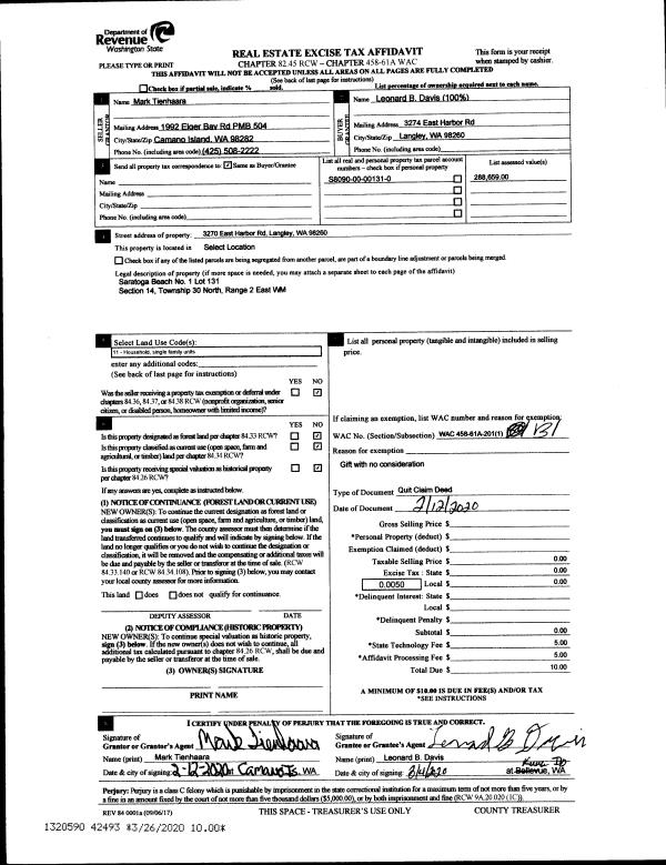 | Mailing Address: | CASSANDRA SHERLOCK 956 FALCON RD CAMANO ISLAND, WA 98282 | % Ownership: | 100.0000000000% |