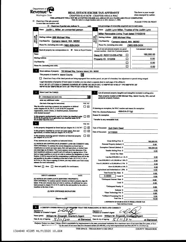 | 14 | 09/01/1993 | QCD | Quit Claim Deed | H, & H | HARRINGTON, DAVID L | | | $0.00 | 33458 | 93017956 |