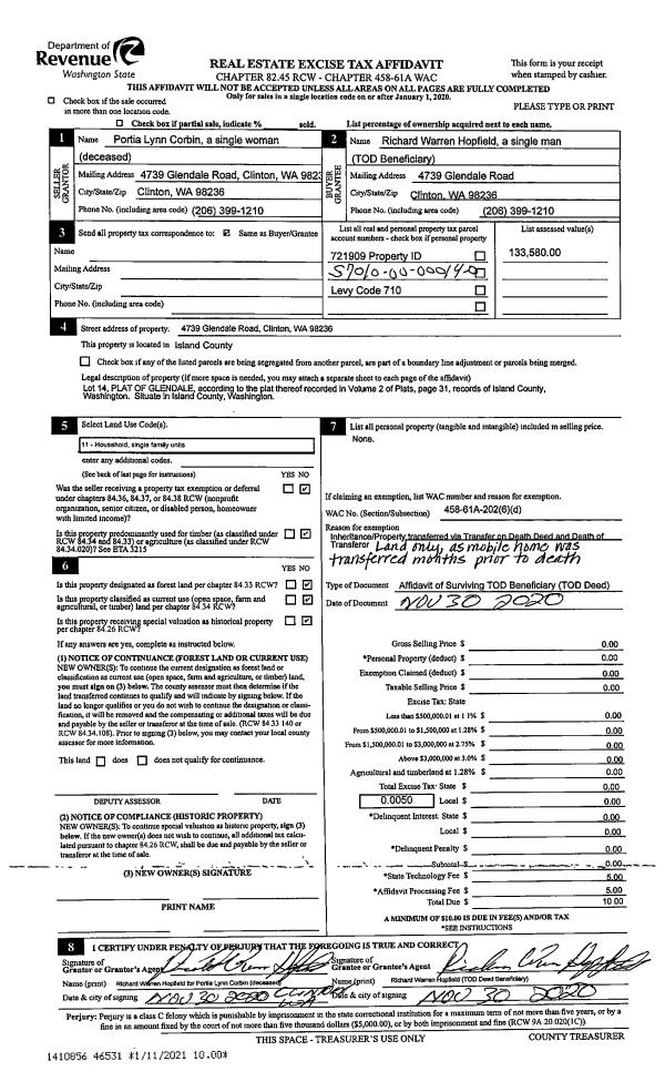| Mailing Address: | LAUREN PETERSON SPECHT 463 QUINN DR OAK HARBOR, WA 98277 | % Ownership: | 100.0000000000% |