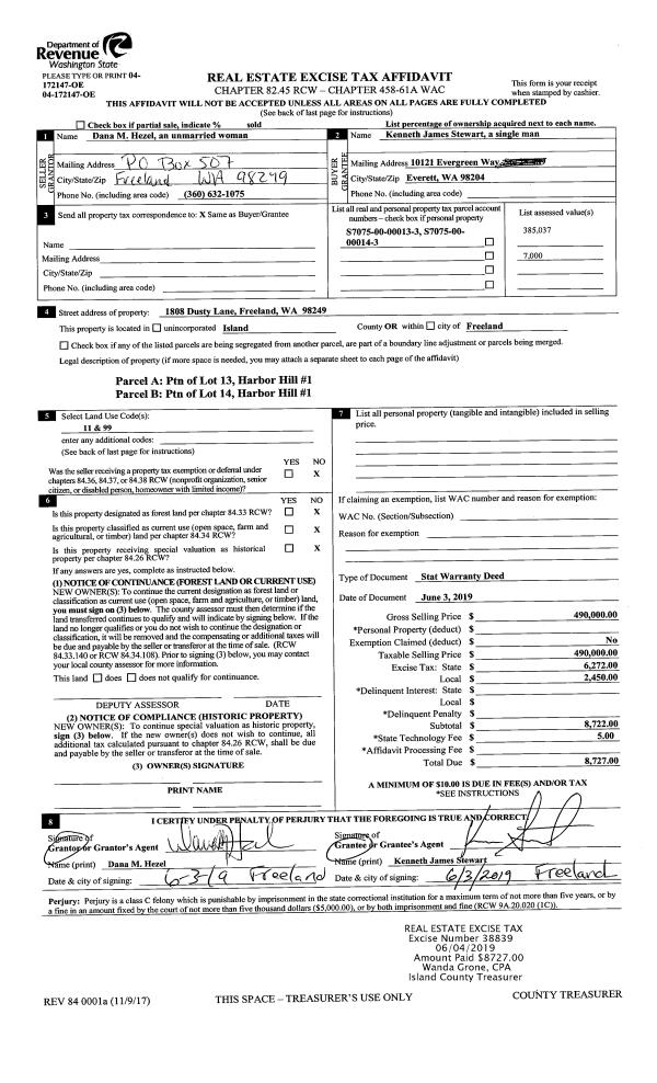| 2 | 05/03/2019 | EZ | Easement | STANLEY, MAURICE D / PAIGE B | PUGET SOUND ENERGY | | | $3,000.00 | 38397 | 4462862 |