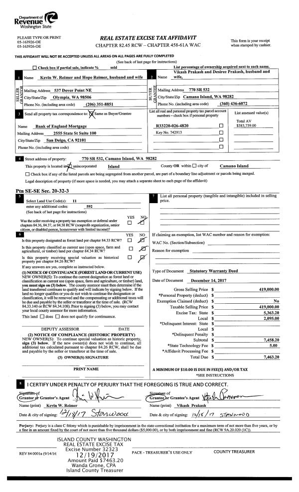 | 3 | 05/03/2019 | EZ | Easement | WHITE, REGINALD A | PUGET SOUND ENERGY | | | $3,000.00 | 38397 | 4462862 |