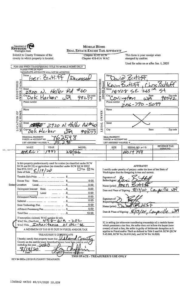 | Tax Area: | 719 - APPRAISER-S Whid Schl Dist, outside Langley, vacant & 50 acres or less | Land Use Code | 91 |