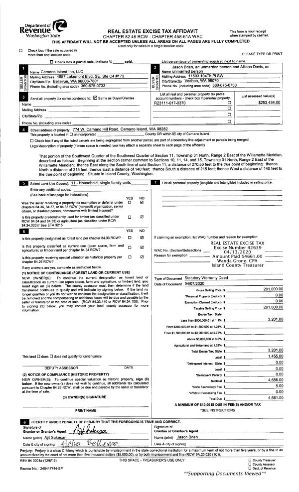 | Tax Area: | 719 - APPRAISER-S Whid Schl Dist, outside Langley, vacant & 50 acres or less | Land Use Code | 91 |