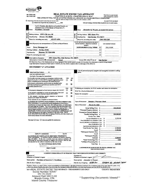| 1 | 04/14/2015 | EXECUTORD | Executor Deed | FITZWILLIAMS, VINCENT | WILSON, KENNETH DEAN | | | $0.00 | 19175 | 4376684 |
