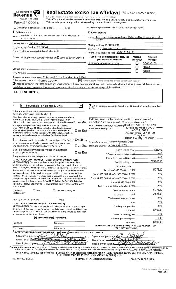 | Mailing Address: | 1855 CUTTER PL OAK HARBOR, WA 98277 | % Ownership: | 100.0000000000% |