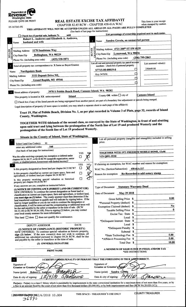 | Mailing Address: | MELISSA A CASEY 1858 CUTTER PL OAK HARBOR, WA 98277 | % Ownership: | 100.0000000000% |