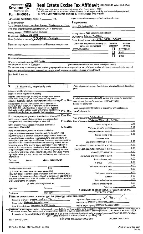 | Mailing Address: | SARAH SILVERMAN-PUCCI 2628 BUSBY RD OAK HARBOR, WA 98277 | % Ownership: | 100.0000000000% |