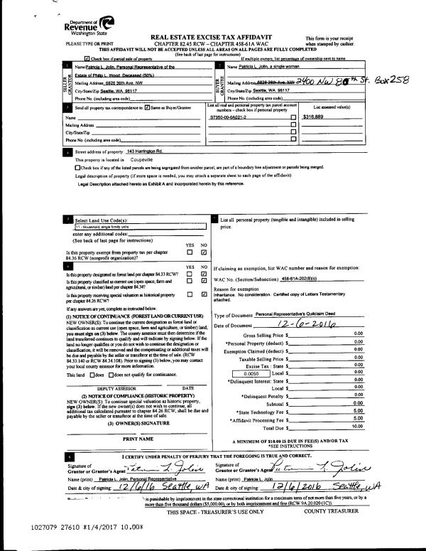 | Mailing Address: | PAMELA GRACE TYHUIS 543 SW WATERLOO AVE OAK HARBOR, WA 98277 | % Ownership: | 100.0000000000% |