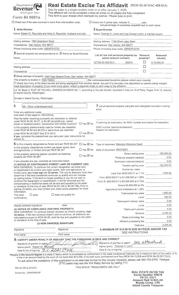 | Mailing Address: | PATTI LORRAINE HAAS 1837 BRIGANTINE CT OAK HARBOR, WA 98277 | % Ownership: | 100.0000000000% |