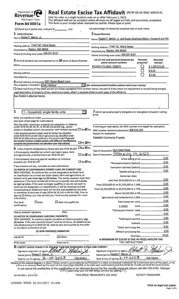 | 2 | 10/11/2018 | QCD | Quit Claim Deed | M & K SCHWARTZ AK TRUST | SCHWARTZ, ADRIANNE LOUISE | | | $0.00 | 37308 | 4457898 |