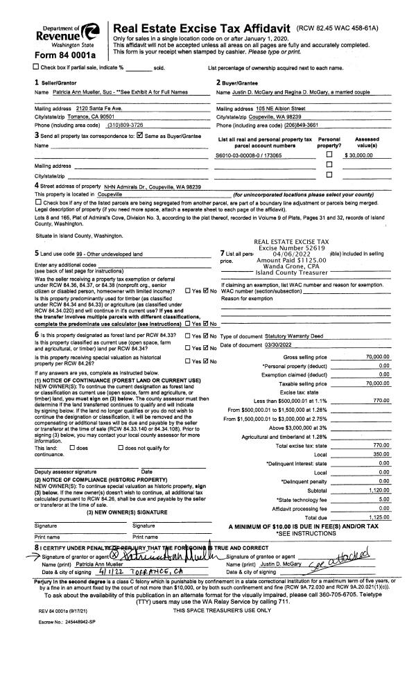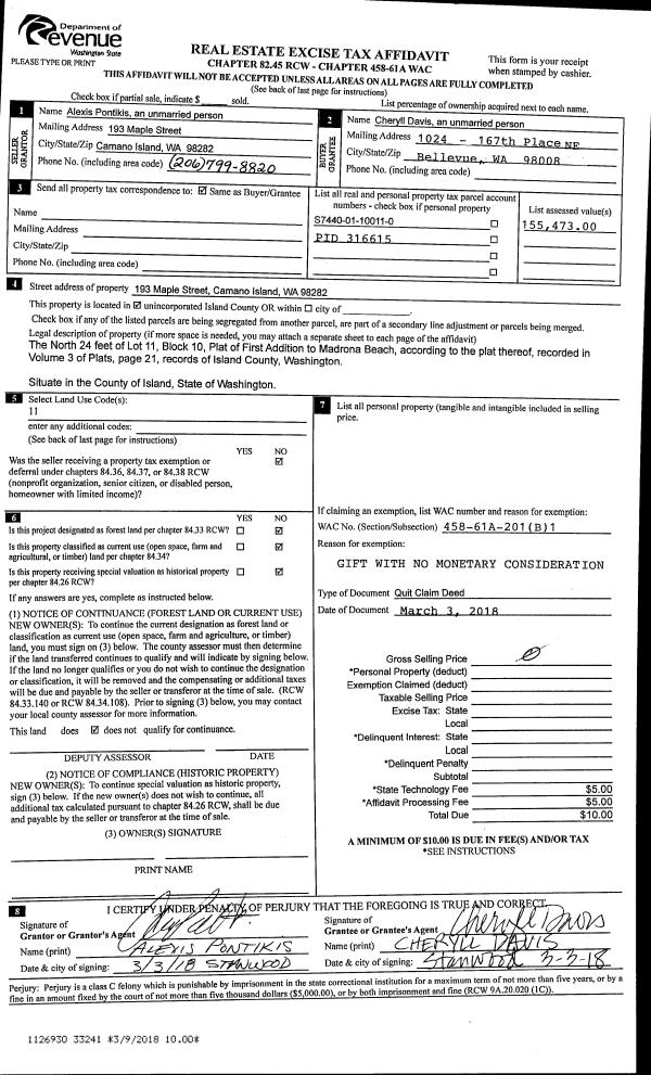 | Mailing Address: | KATHLEEN M MAURSTAD 130 E N CAMANO DR UNIT 4 CAMANO ISLAND, WA 98282 | % Ownership: | 100.0000000000% |