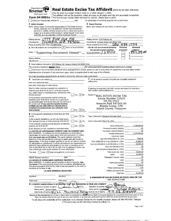 | Mailing Address: | 130 E NORTH CAMANO DR CAMANO ISLAND, WA 98282 | % Ownership: | 100.0000000000% |
