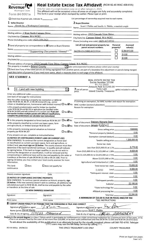 | Mailing Address: | NORMA LOPEZ 4146 BALSAM PL OAK HARBOR, WA 98277 | % Ownership: | 100.0000000000% |