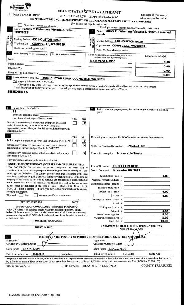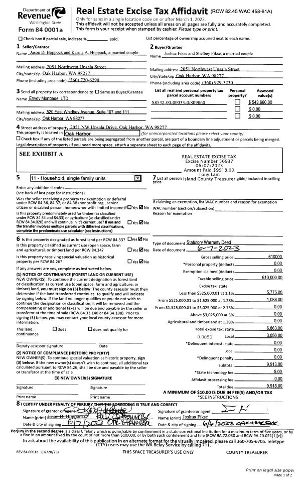 | Mailing Address: | JENNA ELIZABETH NUNES PO BOX 2632 OAK HARBOR, WA 98277 | % Ownership: | 100.0000000000% |