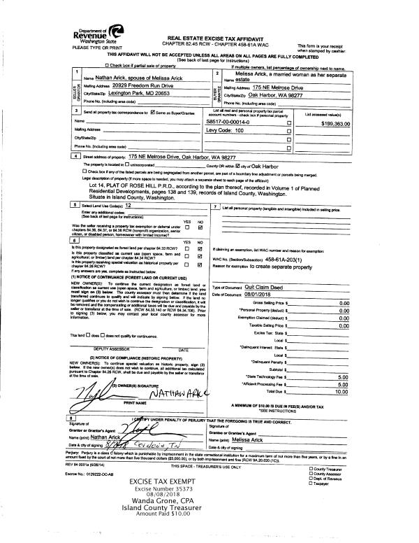 | Mailing Address: | SARAH CHILD 4539 LARSON DR OAK HARBOR, WA 98277 | % Ownership: | 100.0000000000% |