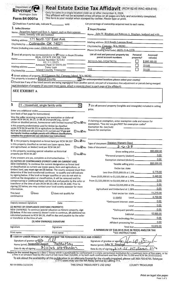 | Mailing Address: | 3435 GREEN RD OAK HARBOR, WA 98277 | % Ownership: | 100.0000000000% |