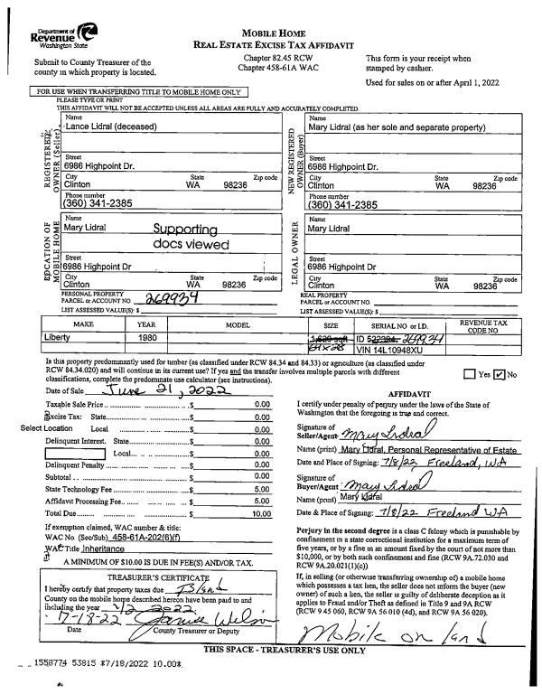 | Mailing Address: | 338 FOREST GLEN LN CAMANO ISLAND, WA 98282-7664 | % Ownership: | 100.0000000000% |