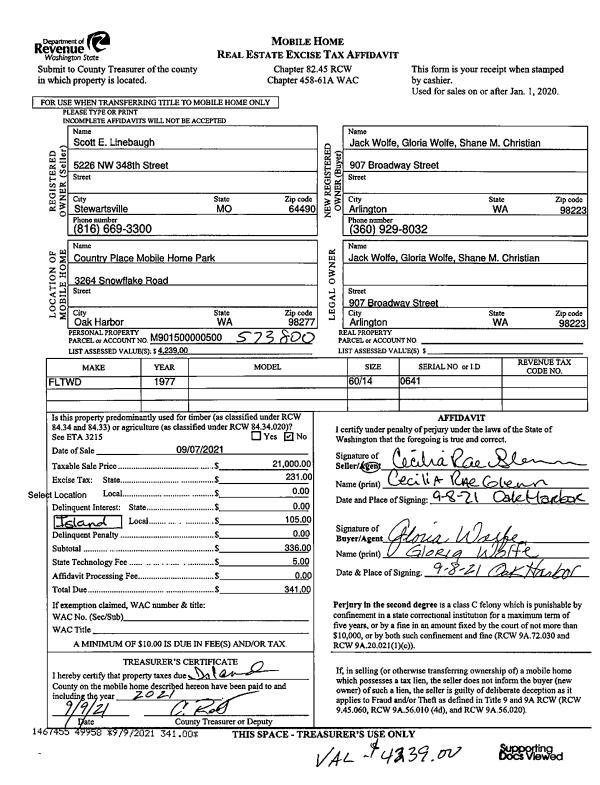 | Mailing Address: | 5432 WILKINSON RD LANGLEY, WA 98260-8700 | % Ownership: | 100.0000000000% |