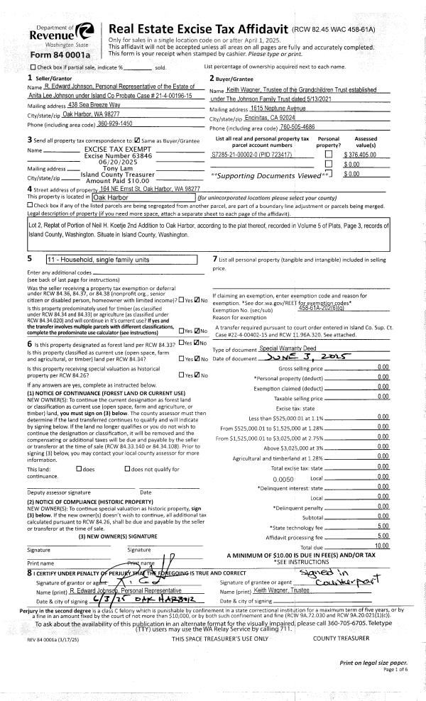 | Mailing Address: | 2744 CRESCENT ACRES RD OAK HARBOR, WA 98277-7831 | % Ownership: | 100.0000000000% |